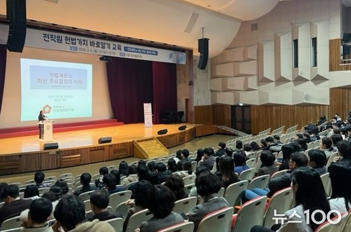 뉴스100 김동초 기자 | 안양시는 9일 오후 2시 소속 공무원들을 대상으로 예승연 헌법재판소 헌법재판연구원 교수를 초빙해 ‘헌법가치 바로 알기’ 교육을 실시했다.