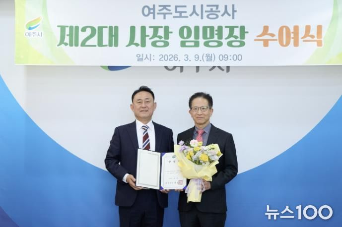 뉴스100 김동초 기자 | 여주시는 여주도시공사 제2대 사장 김철환을 3월 9일자로 임명하고, 이날 오전 시장실에서 임명장 수여식을 개최했다고 밝혔다. 임기는 3년이다.