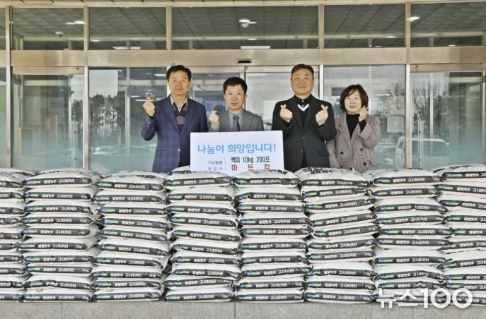 뉴스100 김동초 기자 | 수원시 권선구는 지난 10일 마트킹(대표 김희봉)에서 권선구에 후원한 백미(10kg) 200포에 대한 전달식을 진행했다.
