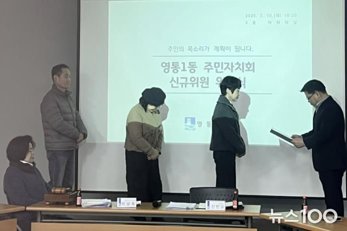 뉴스100 김동초 기자 | 영통구 영통1동은 지난 10일 영통1동 행정복지센터에서 3월 월례회의를 열고 신규 위원 위촉식을 진행했다.