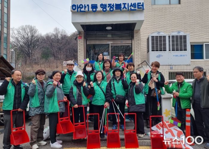 뉴스100 김동초 기자 | 광명시 하안1동 새마을부녀회와 지도자협의회는 활기찬 새봄을 맞이해 11일 하안1동 행정복지센터 일대에서 환경 정비 활동을 펼쳤다.
