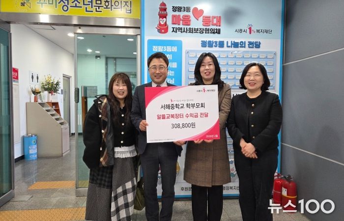 뉴스100 김동초 기자 | 서해중학교 학부모회는 지난 3월 13일 정왕3동 저소득층을 돕기 위해 ‘알뜰 교복 장터’ 운영 수익금 30만8천800원을 기탁하며 지역사회에 온정을 전했다.