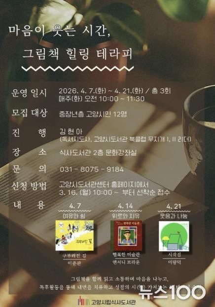 뉴스100 김동초 기자 | 고양특례시 식사도서관은 오는 4월 7일부터 공공도서관 독서문화 프로그램 ‘마음이 웃는 시간, 그림책 힐링 테라피’을 운영한다.