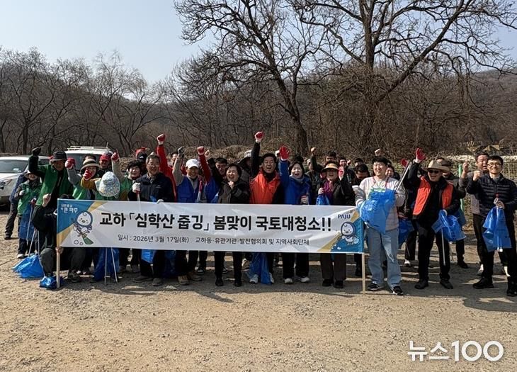 뉴스100 김동초 기자 | 파주시 교하동은 지난 13일, 본격적인 행락철을 앞두고 교하 ‘심학산 줍깅’봄맞이 국토 대청소를 실시했다.