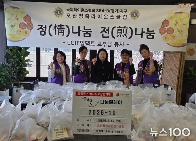 뉴스100 김동초 기자 | 오산시 중앙동 행정복지센터는 지난 17일 청죽라이온스클럽이 관내 취약계층을 위한 ‘사랑의 전 나눔’을 실천했다고 밝혔다.