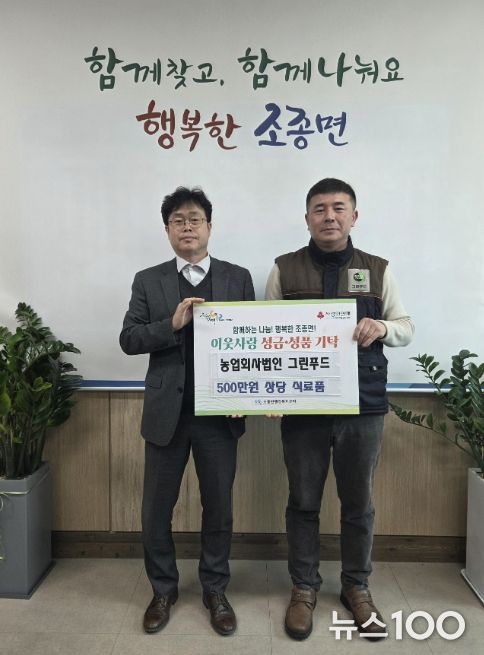 뉴스100 김동초 기자 | 농업회사법인 그린푸드는 18일 가평군 조종면 행정복지센터를 방문해 500만원 상당의 식료품을 기탁하며 취약계층 지원에 힘을 보탰다.