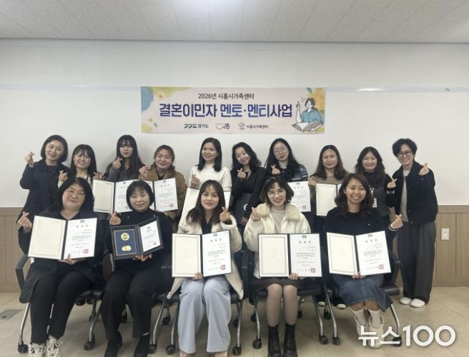 뉴스100 김동초 기자 | 시흥시는 지난 3월 23일 시흥시가족센터에서 ‘2026년 결혼이민자 멘토‧멘티 사업(구, 다문화가족 서포터즈 운영) 멘토 위촉식’을 열고 러시아, 베트남, 중국, 필리핀, 미얀마, 일본, 캄보디아 7개국 출신 멘토 14명에게 위촉장을 수여했다.