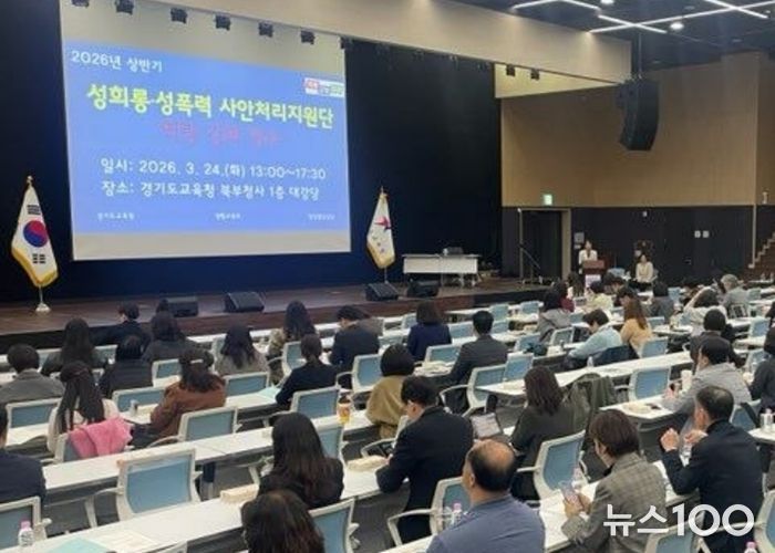 뉴스100 김동초 기자 | 경기도교육청이 24일 북부청사에서 성희롱·성폭력 사안 처리의 현장 대응력과 전문성 강화를 위해 ‘2026 상반기 성희롱·성폭력 사안처리지원단 역량 강화 연수’를 운영했다.