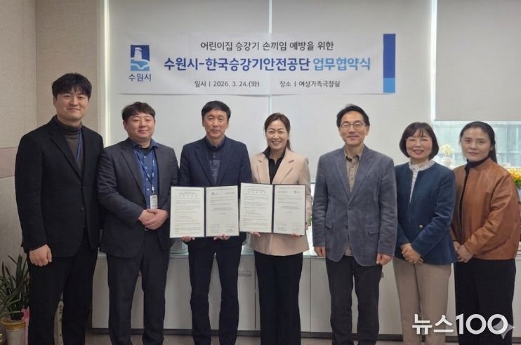 뉴스100 김동초 기자 | 수원특례시와 한국승강기안전공단 수원지사는 24일 수원시청에서 ‘어린이집 승강기 손 끼임 사고 예방을 위한 업무협약’을 체결하고, 어린이집 내 영유아의 안전한 보육 환경을 조성하기 위해 협력하기로 했다.