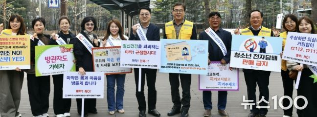 뉴스100 김동초 기자 | 수원시 영통구는 지난 24일, 영통구청 중심상가 일원에서 민·관·경 합동 청소년 유해환경 계도 및 선도 캠페인을 실시했다.