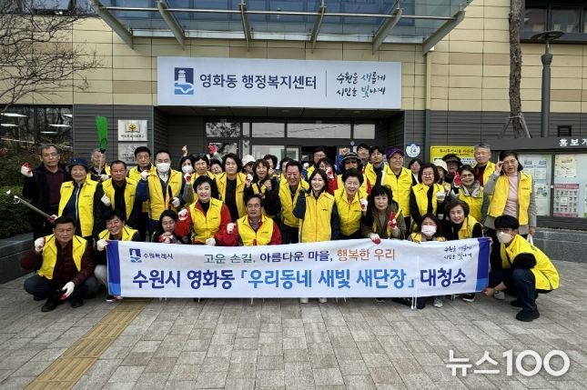 뉴스100 김동초 기자 | 수원시 장안구 영화동은 지난 24일, 쾌적한 마을환경 조성을 위한 ‘우리동네 새빛 새단장 일제 대청소’를 실시했다.