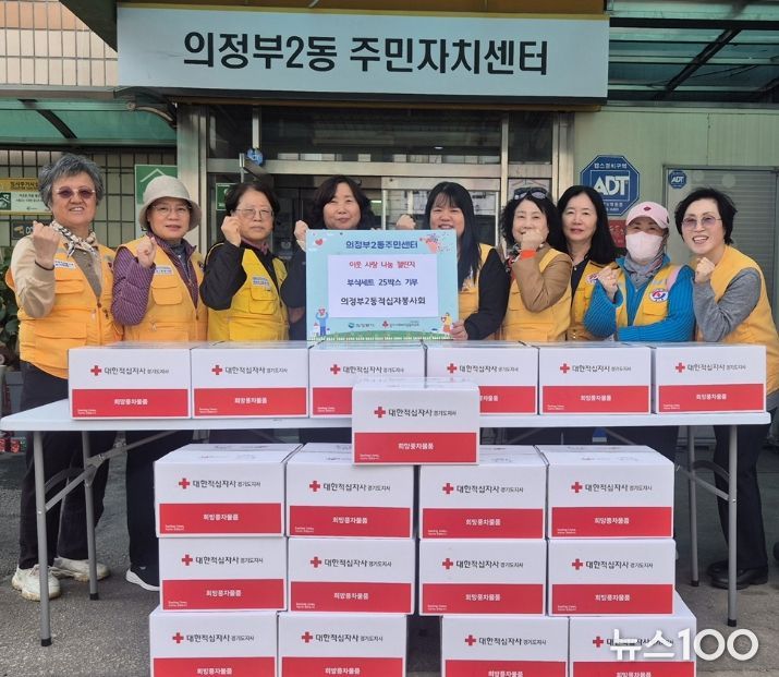 뉴스100 김동초 기자 | 의정부시 의정부2동주민센터는 3월 24일 의정부2동 적십자봉사회가 정성껏 마련한 부식세트 25상자곳를 전달하며 따뜻한 나눔의 손길을 전했다고 밝혔다.