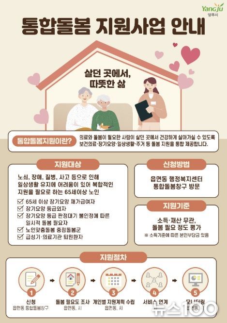 뉴스100 김동초 기자 | 양주시가 오는 3월 27일 ‘돌봄통합지원법’의 전국 시행에 맞춰 양주형 통합돌봄 모델인 ‘온(溫)케어’ 서비스를 본격적으로 운영한다.