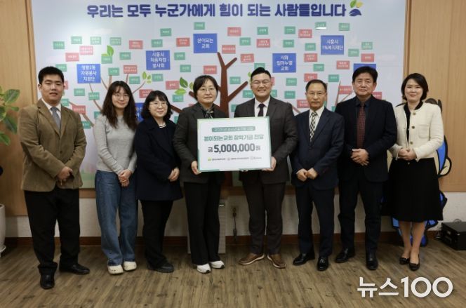 뉴스100 김동초 기자 | 시흥시 정왕2동에 위치한 본이되는교회는 지난 3월 24일 오전 정왕2동 행정복지센터를 방문해 ‘청소년 꿈 지원 사업’을 위한 장학기금 500만 원을 전달했다.