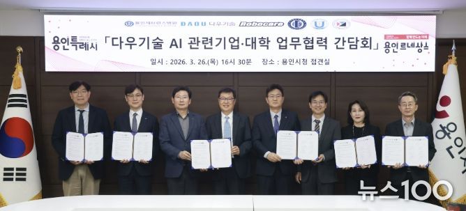 뉴스100 김동초 기자 | 용인특례시는 26일 ㈜다우기술, 지역내 대학, 병원, 인공지능산업 관련 기업 관계자들과 ‘지역 AI 및 벤처기업 육성을 위한 사무공간 무상제공 수요처 간담회’를 개최했다.