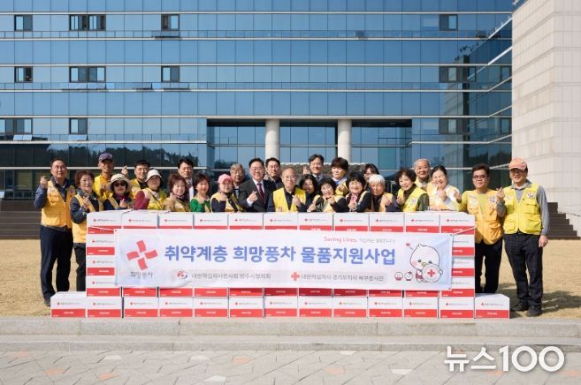 뉴스100 김동초 기자 | 대한적십자사봉사회 양주시협의회(회장 정진수)는 지난 25일 시청 원형광장 앞에서 ‘희망풍차 물품 전달식’을 개최했다.