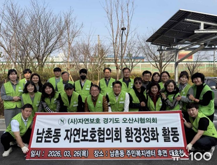 뉴스100 김동초 기자 | 오산시 남촌동 자연보호협의회는 지난 26일 봄을 맞아 대호천 일대 둘레길에서 회원들과 남촌동 행정복지센터 직원들이 함께 참여한 가운데 환경정화활동을 실시했다.