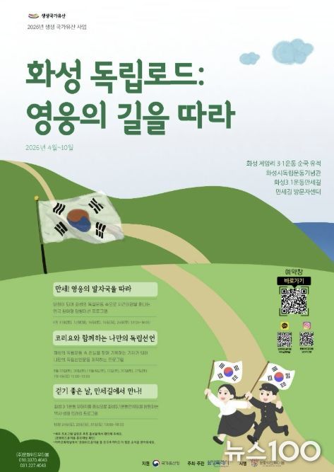 오는 4월에는 대표 프로그램인 ‘만세! 영웅의 발자국을 따라’를 진행한다. 참가자들은 화성 3·1운동 만세길을 직접 걸으며 스토리텔링형 연극에 참여해 당시 지역 독립운동의 열기를 경험할 수 있다. 프로그램은 무료로 제공하며, 3월 31일부터 포스터 하단의 QR코드를 이용해 참가 신청을 접수할 예정이다.