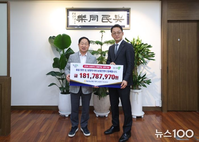 뉴스100 김동초 기자 | 남양주시는 30일 시장 집무실에서 NH농협은행 남양주시지부와 ‘NH농협 제휴카드 장학기금 전달식’을 개최했다고 밝혔다.