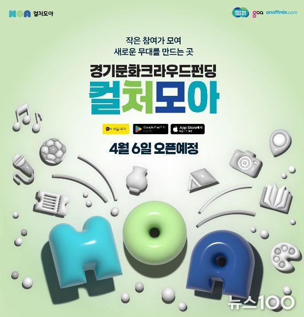 뉴스100 김동초 기자 | 경기도민이 직접 투자하고 참여해 문화·예술인의 자생력을 키우는 경기도의 문화 크라우드펀딩 플랫폼 ‘컬처모아’가 4월 6일 공식 출범한다.