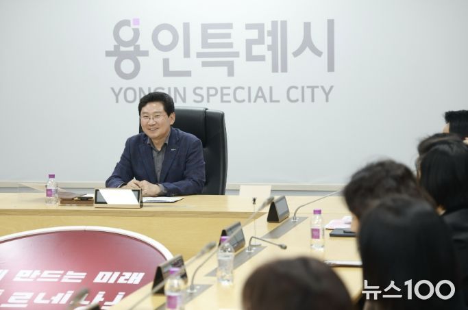 이 시장은 “삼성전자와 SK하이닉스를 비롯해 소재·부품·장비 기업들이 용인에 투자하는 규모가 1000조 원에 육박하는 초대형 반도체 프로젝트가 진행됨에 따라 용인은 인구 150만 명의 광역시로 가는 여정에 있다”며 “시대의 흐름과 변화에 맞춰 용인반도체고교도 2027년 봄에 개교할 수 있도록 챙기겠다”고 했다.
