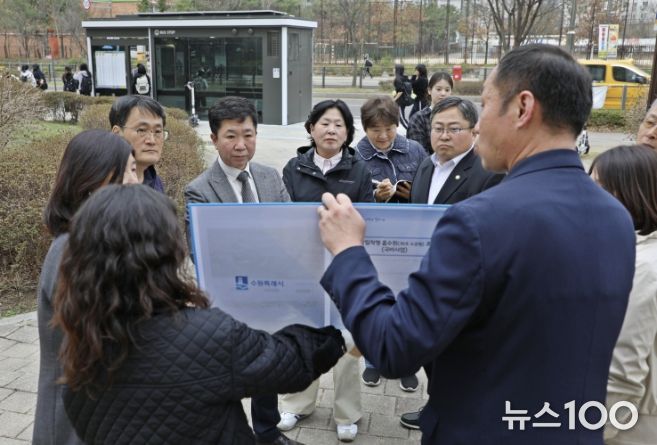 뉴스100 김동초 기자 | 수원시 권선구는 지난 30일, 김정렬·조미옥·박현수·윤경선 수원시의회 의원들과 함께 금곡동 일대의 주요 사업 현장을 찾아 보행 안전과 공원 환경 개선 추진 상황을 집중적으로 점검했다.