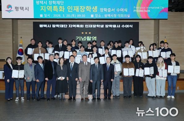 뉴스100 김동초 기자 | 평택시 장학재단은 지난 3월 28일 평택시청 대회의실에서 '2026년도 지역특화 인재 장학생 장학증서 수여식'을 개최했다.