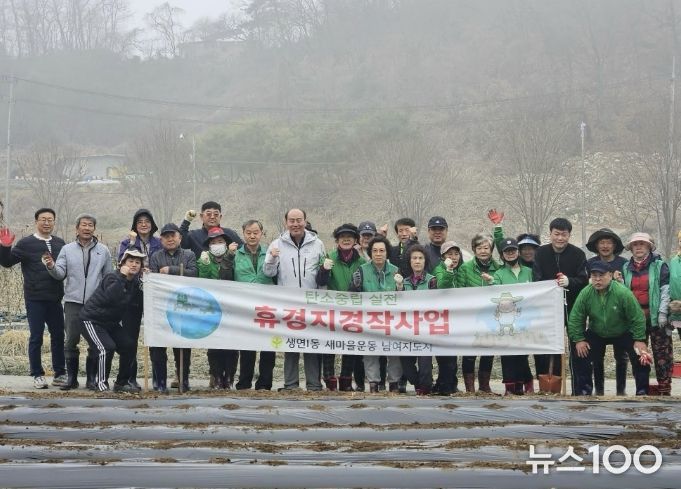 뉴스100 김동초 기자 | 생연1동 새마을남녀지도자협의회는 지난 28일 지역 내 휴경지를 활용한 감자 심기 활동을 했다.