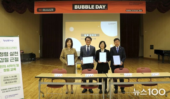 뉴스100 김동초 기자 | 안양시청소년재단은 지난 30일 만안청소년수련관 도담소극장에서 전 직원을 대상으로 내부 커뮤니케이션 행사 ‘버블데이(BUBBLE DAY)’를 운영하며 조직 소통과 청렴문화 확산에 나섰다.