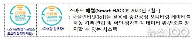 뉴스100 김동초 기자 | 농림축산식품부와 식품의약품안전처는 스마트 해썹 제도를 도축장과 집유장까지 확대 적용할 수 있도록 '식품 및 축산물 안전관리인증기준' 고시를 3월 31일 일부 개정했다고 밝혔다.