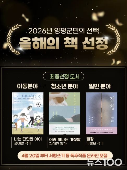 뉴스100 김동초 기자 | 양평군은 군민 참여로 진행된 2026년 ‘올해의 책’ 투표를 마무리하고, 최종 선정 도서를 발표했다.