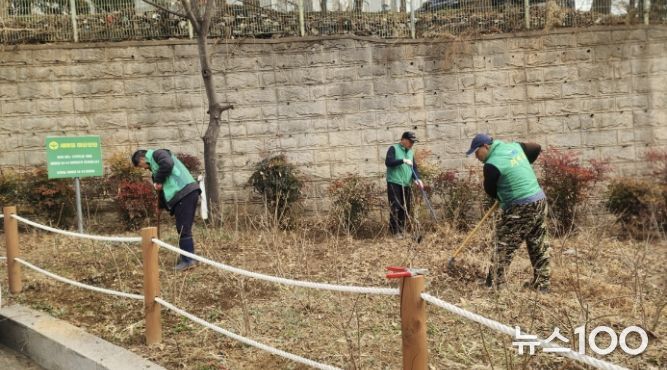 뉴스100 김동초 기자 | 시흥시 신현동 새마을남여협의회는 지난 4월 1일 포동에 있는 수국정원에서 봄맞이 정비 활동을 추진하고, 시민들이 더욱 쾌적하게 이용할 수 있도록 환경 개선에 나섰다.