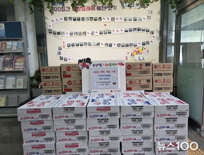 뉴스100 김동초 기자 | 의정부시 송산1동주민센터는 3월 31일 아이이디건설㈜이 관내 어려운 이웃을 위해 라면 63상자와 햇반 22상자를 기부했다고 밝혔다.