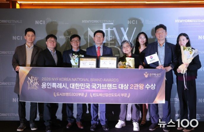 뉴스100 김동초 기자 | 용인특례시가 칸 국제광고제, 클리오광고제와 함께 세계 3대 광고제로 꼽히는 뉴욕페스티벌(NYF)이 주관하는 ‘2026 뉴욕페스티벌 대한민국-국가브랜드 대상’(NYF K-NBA)에서 도시브랜드(CI) 부문과 반도체산업 선도 도시 부문 1위로 선정됐다.