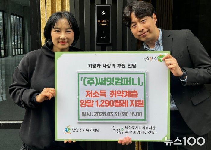뉴스100 김동초 기자 | 남양주시는 지난달 31일 ㈜써밋컴퍼니가 지역사회 소외계층을 위해 양말 1,290켤레를 북부희망케어센터에 전달했다고 2일 밝혔다.