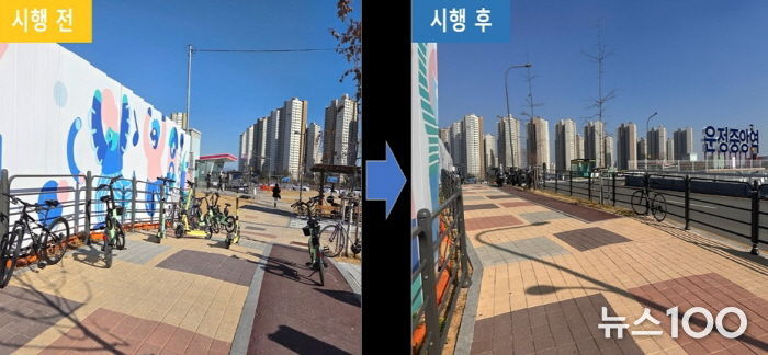이에 파주시는 운정중앙역 일대 지정주차제 시행구역 내 노면 주차구역을 설치하고, 대여업체와 협력해 스마트폰 앱상 주차금지구역을 설정하는 등 이용자의 올바른 반납 문화를 유도하고, 지정주차구역 외 반납된 기기에 대해서는 즉시 견인을 시행했다.