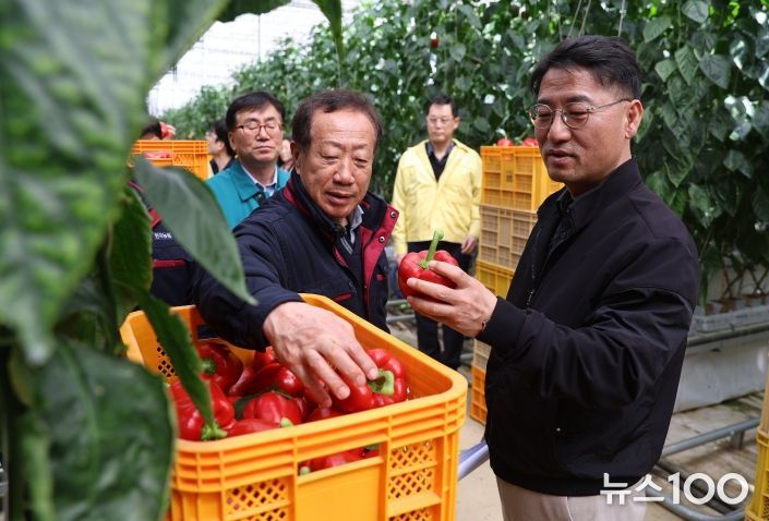 뉴스100 김동초 기자 | 박정훈 농림축산식품부 식량정책실장은 4월 7일 최근 중동 상황에 따른 국제유가 상승과 농자재 가격 상승으로 어려움을 겪고 있는 경기도 고양시 소재 파프리카 시설원예 농가를 방문하여 생육상황과 영농 여건을 직접 점검하고 현장 애로사항을 청취했다.