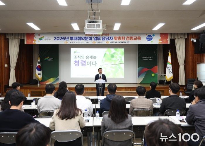 뉴스100 김동초 기자 | 여주시는 4월 6일부터 7일까지 이틀간 부패취약분야(계약, 재·세정, 인·허가, 보조금 업무 등) 담당자를 대상으로 맞춤형 청렴교육을 실시했다. 교육은 총 4회(오전·오후)로 나누어 소규모로 진행됐으며, 대상자 276명 중 260명이 참석해 높은 참여율 속에 집중도 있게 운영됐다.