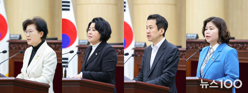 사진 설명: 안산시의회가 8일 본회의장에서 제302회 임시회 제2차 본회의를 열고 시정질문과 5분 자유발언을 진행했다. 사진 왼쪽부터 이날 시정질문에 임한 박은경 의원과 5분 자유발언에 나선 김진숙 송바우나 박은정 의원의 모습.