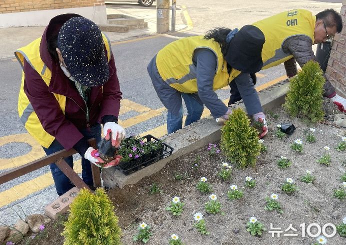 뉴스100 김동초 기자 | 수원시 장안구 영화동은 지난 9일, 주민자치위원 5명이 참여한 가운데 손바닥정원 ‘바람정원’에서 봄맞이 꽃 식재 활동을 진행했다.