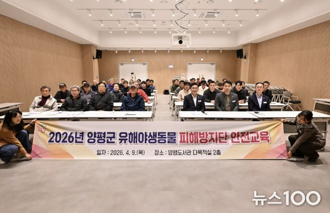 뉴스100 김동초 기자 | 양평군은 지난 9일 아프리카돼지열병(ASF) 확산 방지와 농작물 피해 예방을 위해 ‘2026년 양평군 유해야생동물 피해방지단 안전교육’을 실시했다.