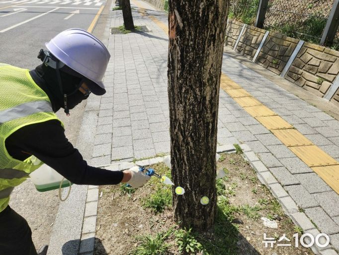 뉴스100 김동초 기자 | 용인특례시 처인구는 은행나무 가로수에 친환경 결실 제어제를 주입해 열매 악취로 인한 문제를 해소한다고 13일 밝혔다.