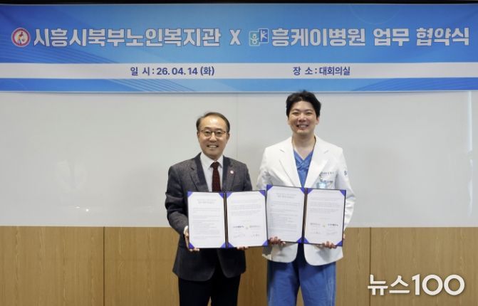 뉴스100 김동초 기자 | 시흥시북부노인복지관과 흥케이병원이 지난 4월 14일 흥케이병원에서 시흥시 북부권역 노인복지 증진을 위한 업무협약을 체결했다.