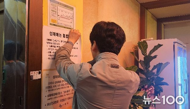 뉴스100 김동초 기자 | 수원특례시는 15일 저녁 장안구 영화동 일원 유흥주점업소 35개소를 대상으로 성매매 방지 게시물 부착 여부를 점검했다.