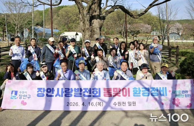 뉴스100 김동초 기자 | 수원시 장안구의 대표 봉사단체인 장안사랑발전회가 지난 16일, 회원 30여 명과 함께 수원천변 일대에서 ‘봄맞이 환경정비’ 활동을 펼쳤다.