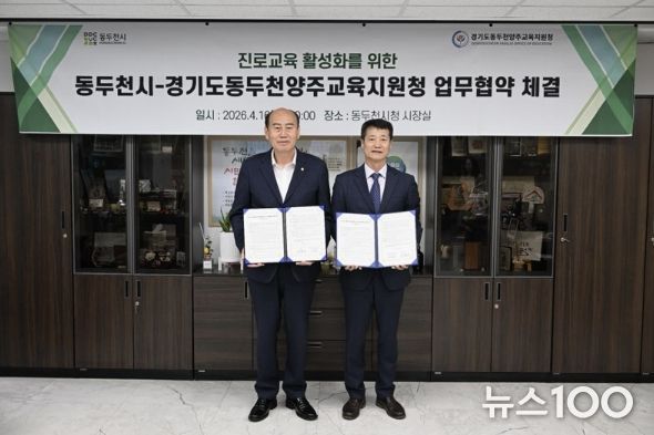 뉴스100 김동초 기자 | 동두천시는 지난 16일 동두천양주교육지원청과 ‘진로체험활동 활성화 및 진로센터 운영의 안정적 추진’을 위한 업무협약(MOU)을 재체결했다고 밝혔다.