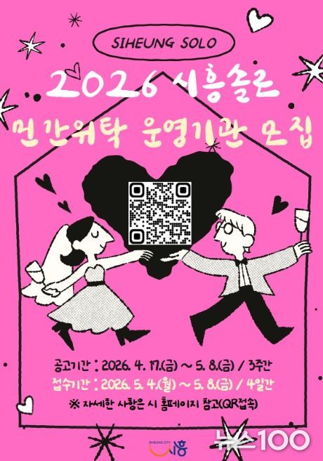 뉴스100 김동초 기자 | 시흥시는 청년층의 건전한 만남 기회를 확대하고 결혼에 대한 긍정적 인식 확산 및 지역 정착을 지원하기 위해 ‘2026 시흥솔로(SOLO) 사업’을 추진하고, 이를 운영할 민간위탁 기관을 공개 모집한다.