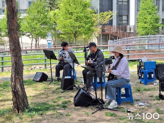 뉴스100 김동초 기자 | 의정부시 송산3동행정복지센터는 4월 18일 민락 두물머리쉼터에서 주민 힐링을 위한 ‘통기타 버스킹 공연’을 개최했다.