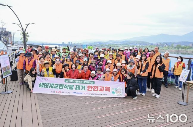 뉴스100 김동초 기자 | 양평군종합자원봉사센터는 지난 20일 오전 9시 양평남한강테라스 하부 산책로 일대에서 ‘2026년 자원봉사 리빙랩 3고 YP(줍고·잇고·지키고) 사업’의 일환으로 생태계 교란 식물 제거 활동을 실시했다.