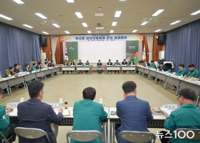 뉴스100 김동초 기자 | 여주시는 지난 4월 21일 시청 4층 대회의실에서 김광덕 부시장 주재로 ‘부시장 권한대행체제 운영 점검회의’를 개최했다. 이번 회의는 20일 여주시장이 제9회 전국동시지방선거 시장예비후보로 등록함에 따라 부시장 권한대행 체제 전환으로 시정의 안정과 업무의 연속성을 유지하고 행정 공백을 최소화하고자 마련했다.